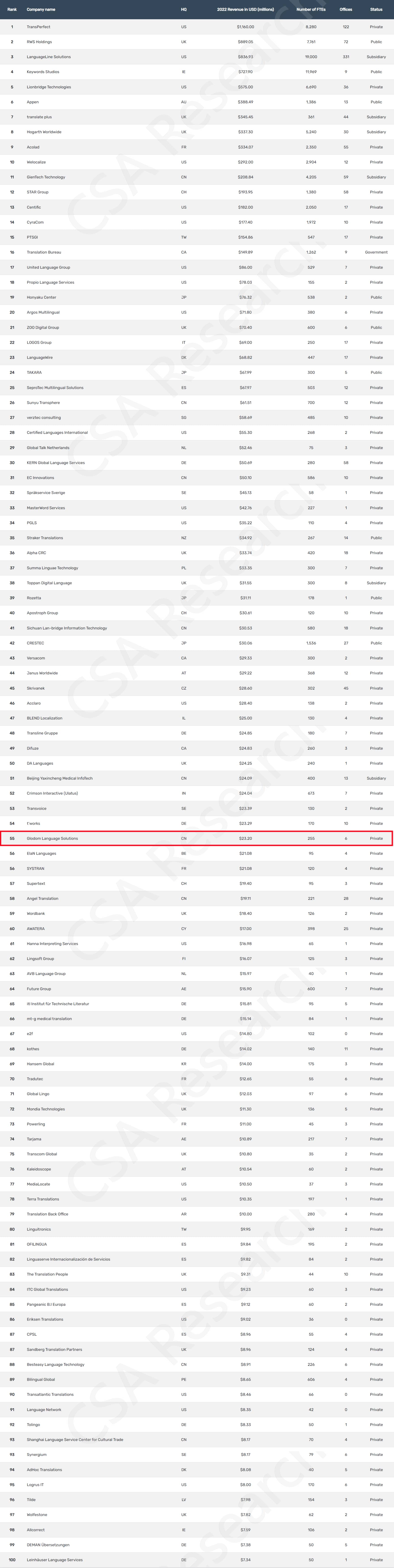 附:2023年全球百強語言服務商榜單